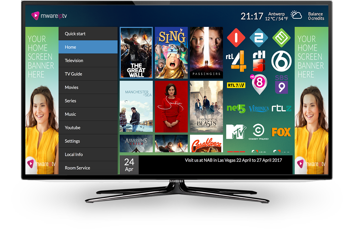 BBC 1, BBC 2, ITV 1, ITV 2, ITV 3, ITV 4, Channel 4, CBS Action, CBS Drama, CBS Reality, Film 4, Spike, BBC News, Sky News, National Geogrophic, Discovery,Syfy